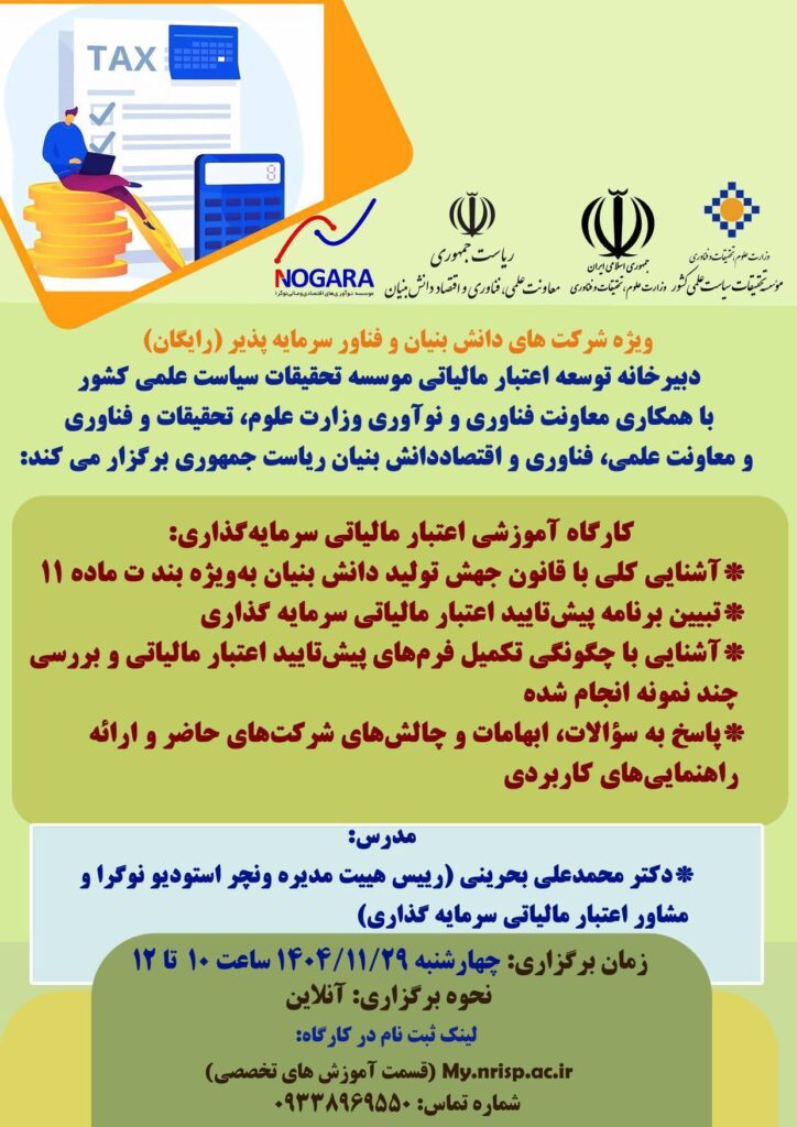 وبینار پیش تایید اعتبار مالیاتی سرمایهگذاری ویژه شرکتهای سرمایهپذیر